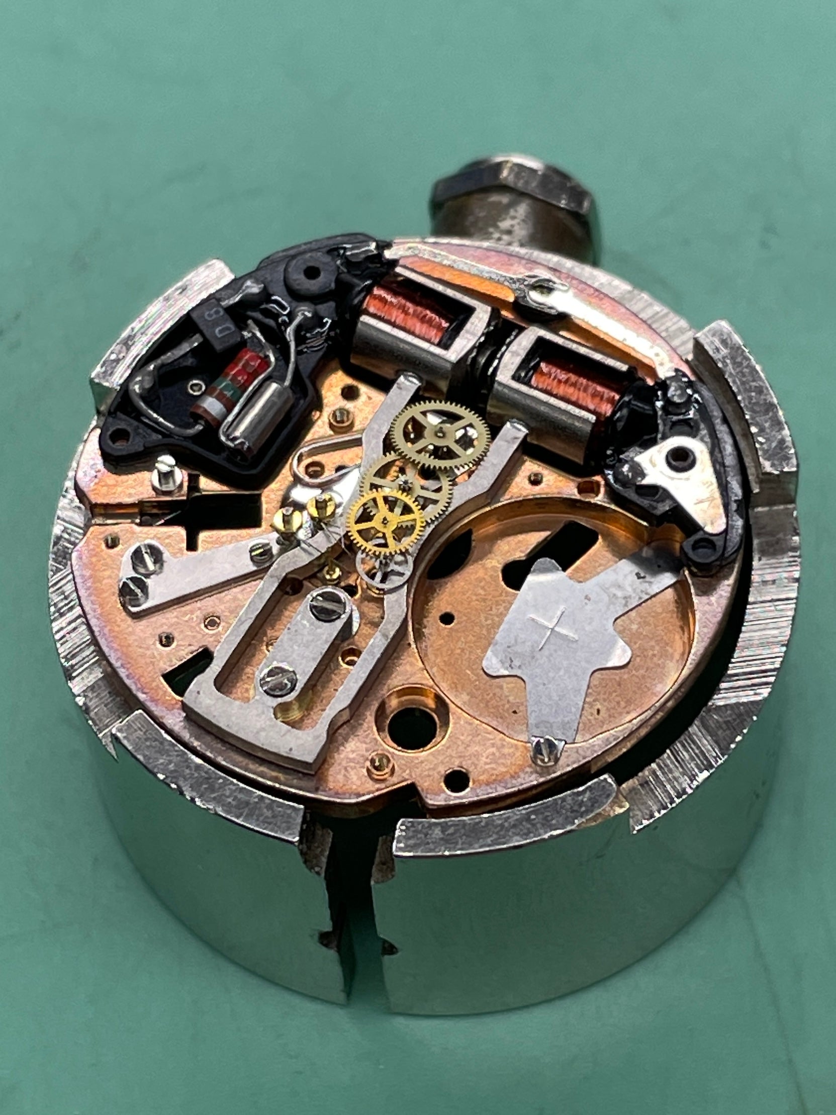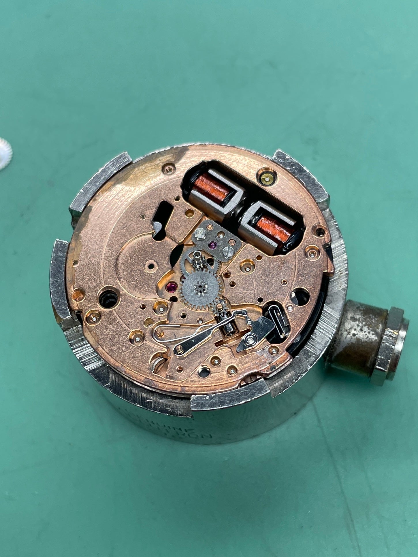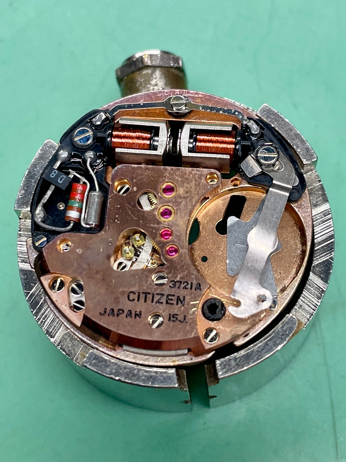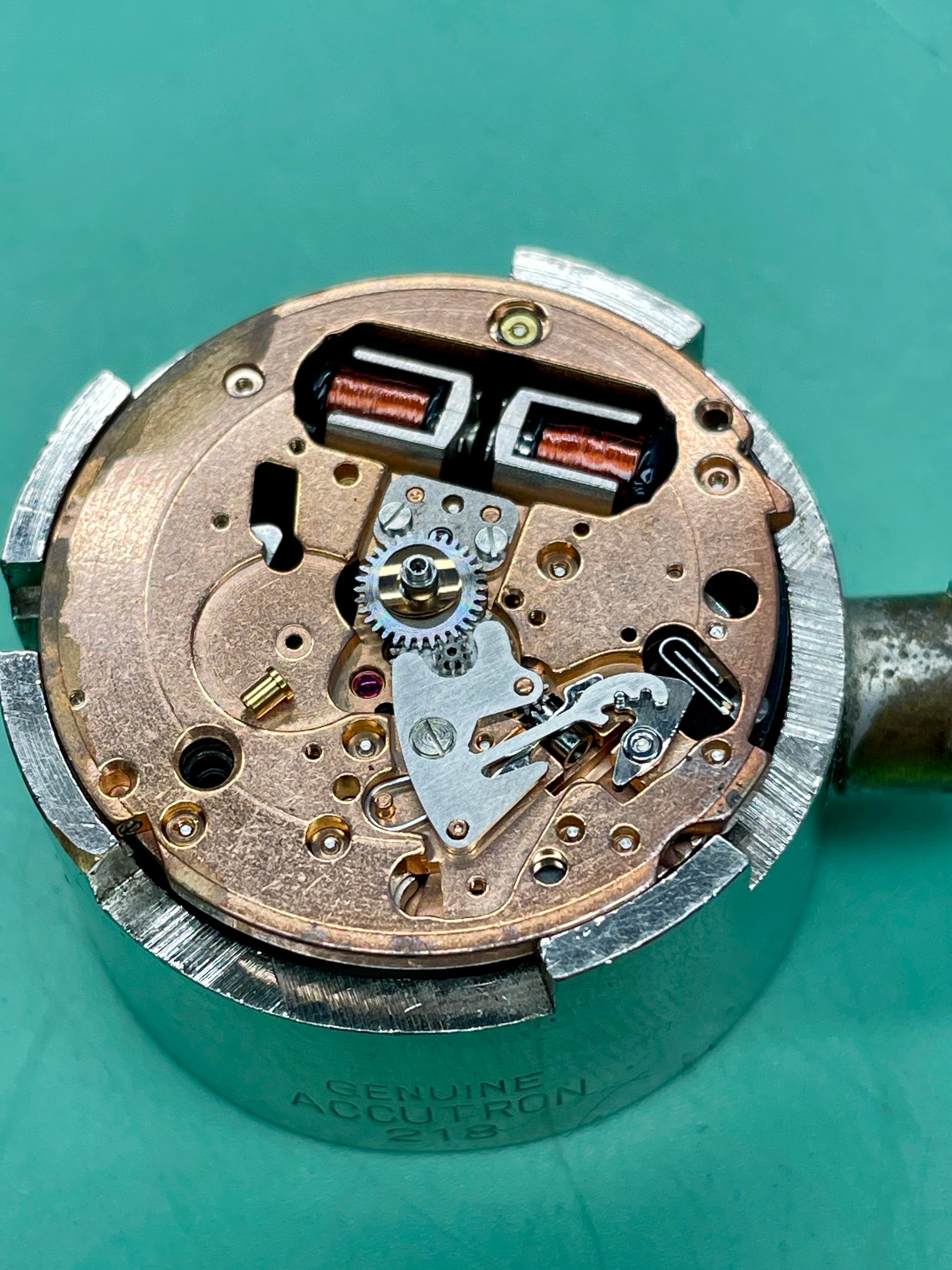 The movement in this is basically a Bulova Accutron 218 movement made under licence by Citizen. The movement is exactly the same other than the bridge plate proudly stating Citizen. There is a small stamp on the mainplate that says Bulova Licence (see photo)