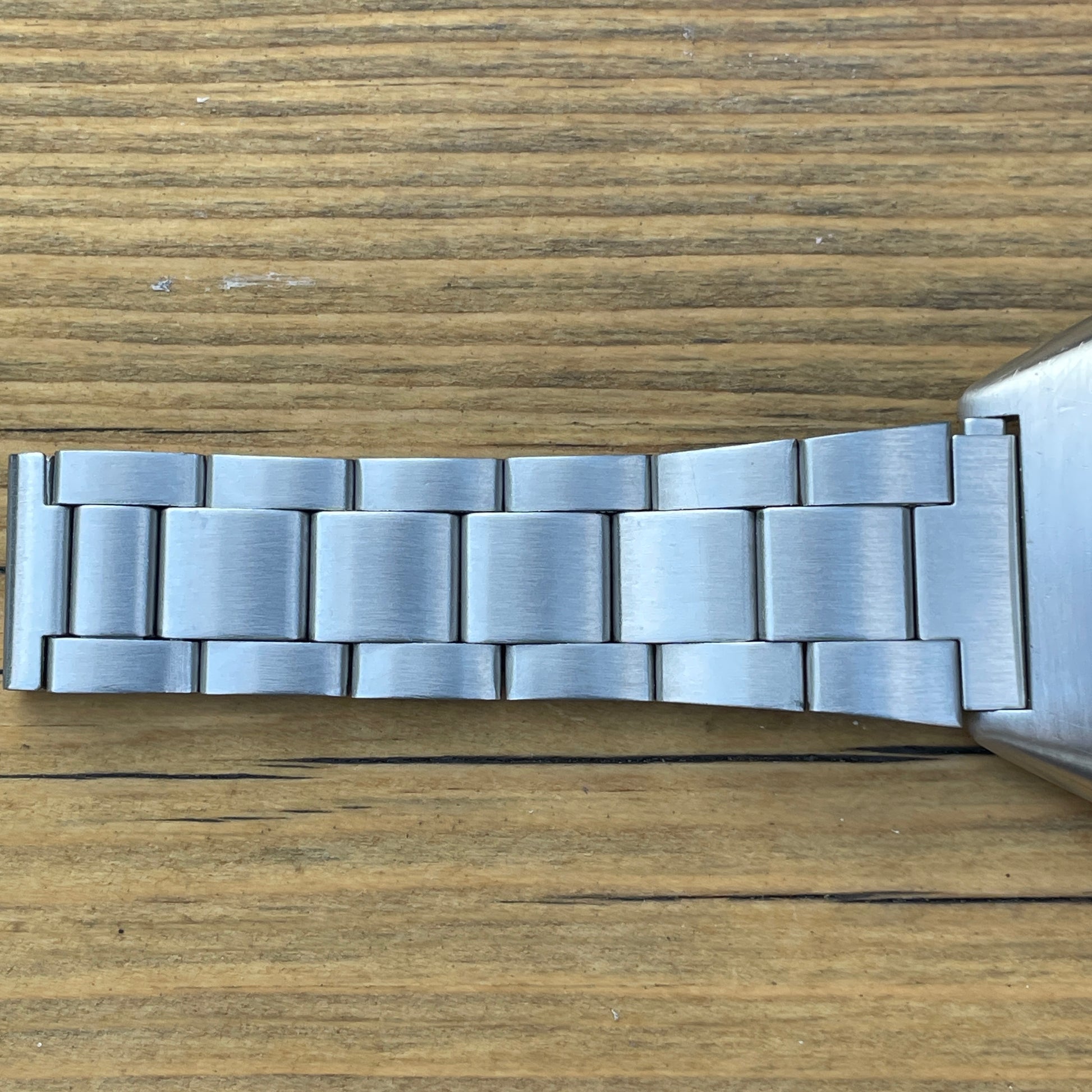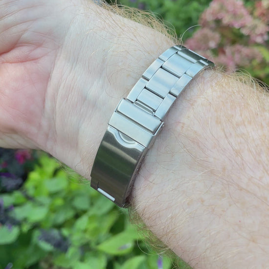 I have fitted an aftermarket bracelet to this watch to complete the look. It has 19mm lugs which does limit choices but I found a bracelet with spring end links that fit a multitude of sizes which is the best compromise I can offer. I think it suits it and adds to the overall look.