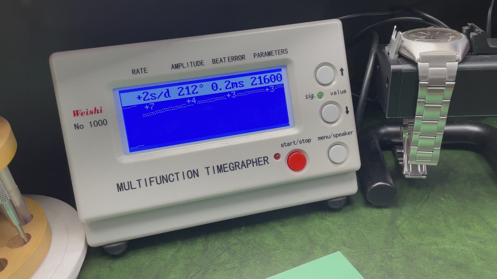 The watch is absolutely gorgeous and gently humming away and another stunning tribute to Mikes skill. It's on the green rally strap which complements it perfectly. However, my wife has taken a shine to it and now wears it when it goes with her blouse, handbags, shoes etc.