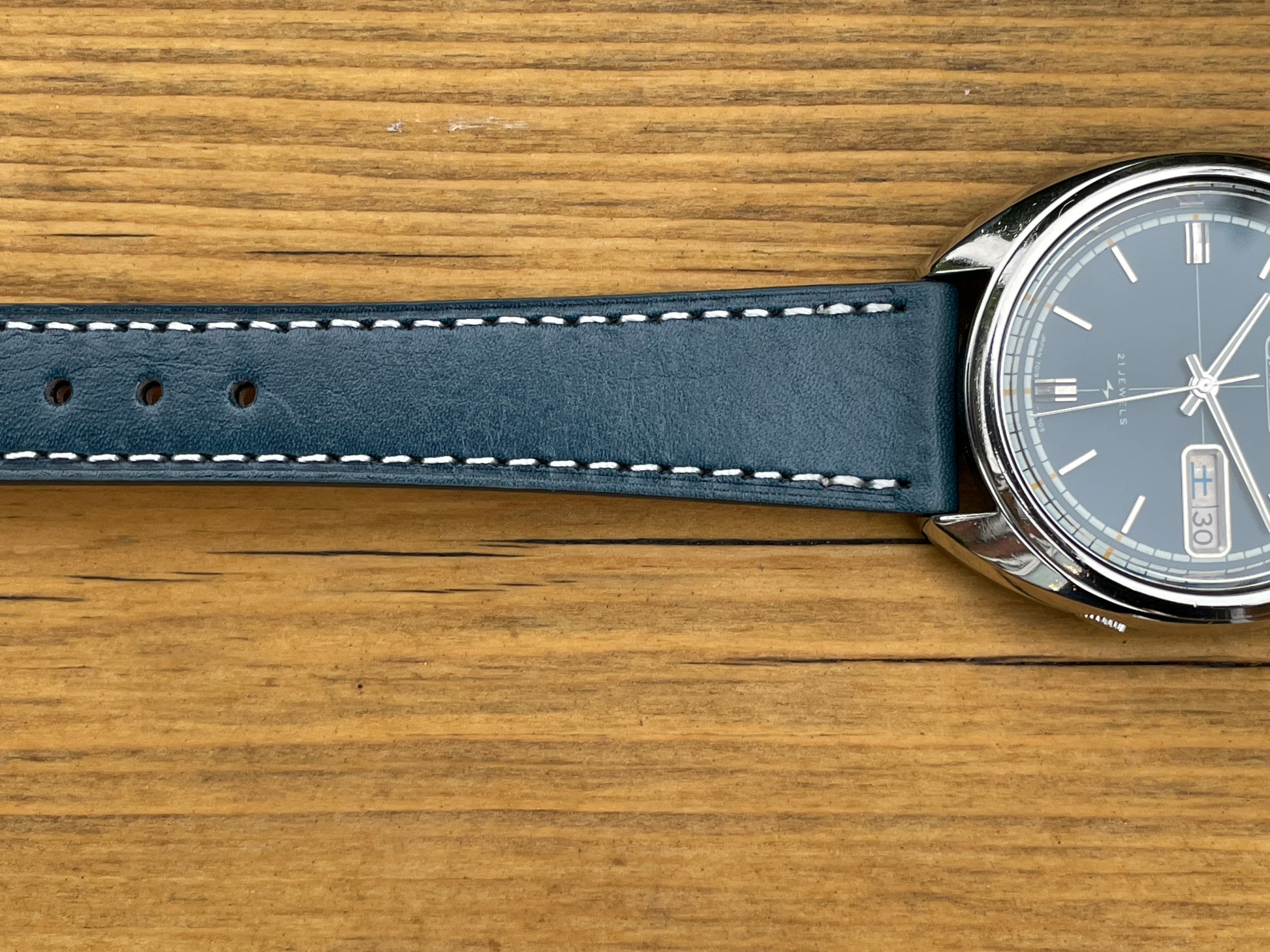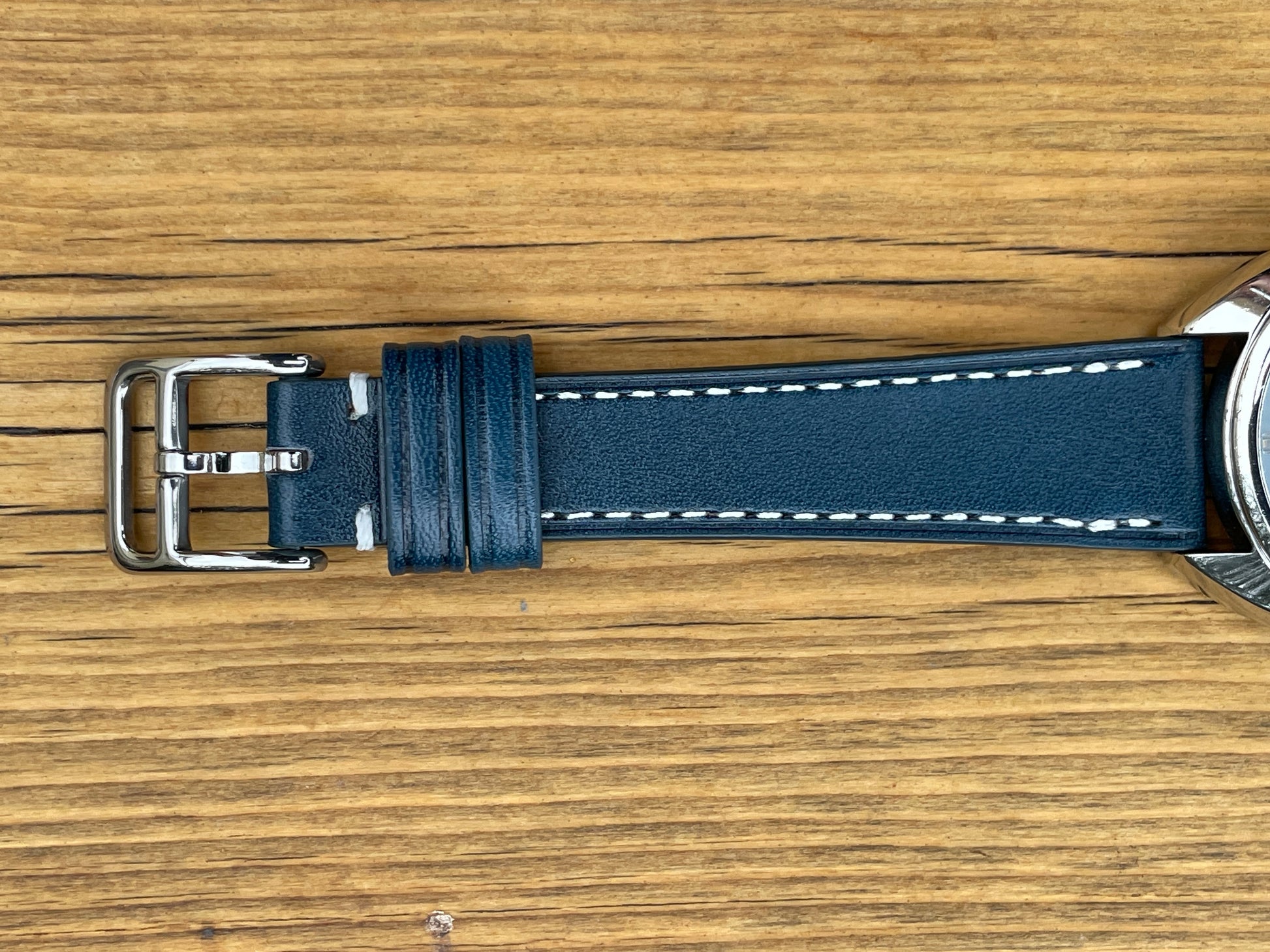 I love the 70's and I love this watch, case shape and dressy white dial. Delivered with a nice Croc. embossed leather strap and protective film on the spotless dial glass. I am very happy that this is now my watch, it's clearly a keeper.